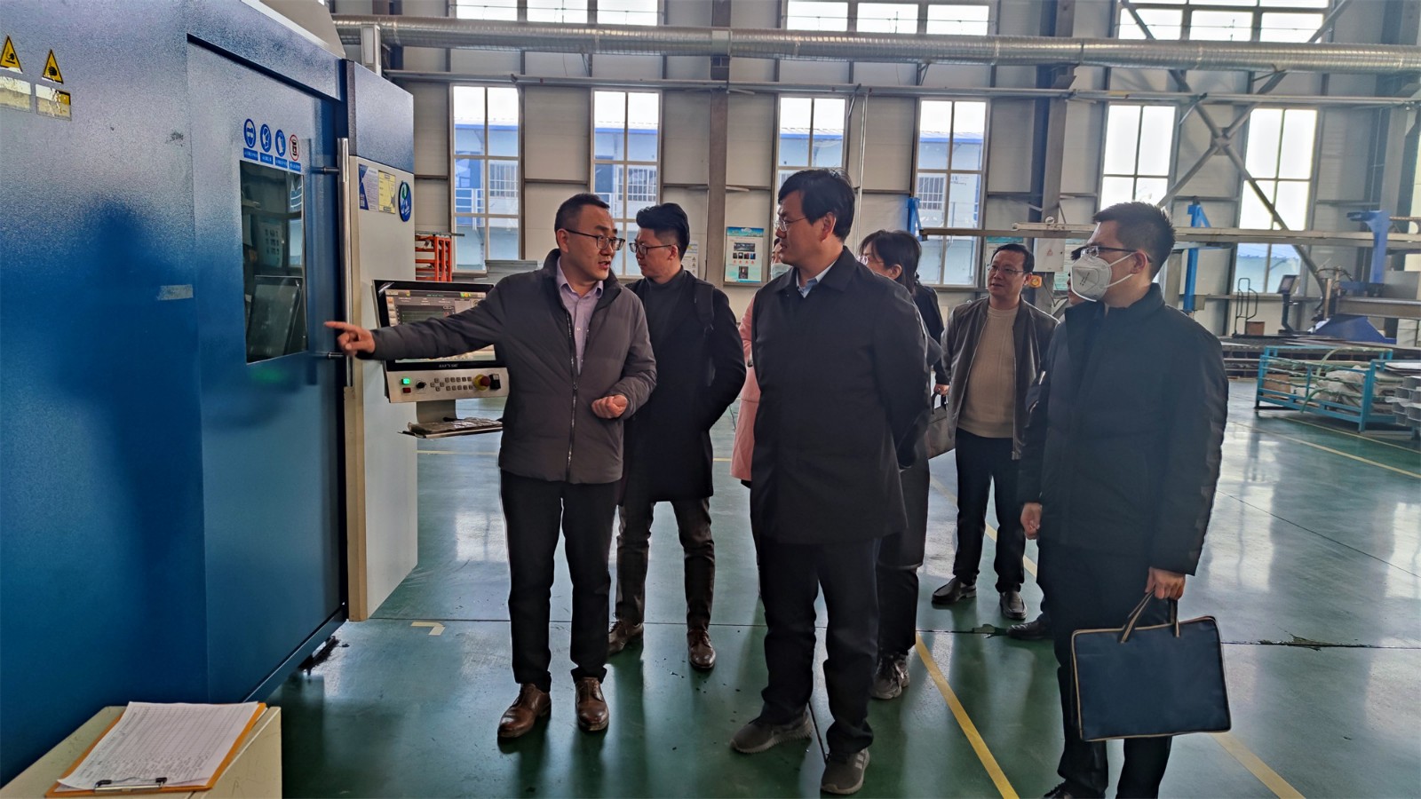 尹處長一行來到工廠廠房,參觀了生產現(xiàn)場,詳細詢問了項目投產情況。高總經理向尹處長匯報了聚力特工業(yè)設備智能制造產業(yè)化項目的建設進程、生產能力和發(fā)展前景,并對各級政府在疫情期間全力保障企業(yè)的生產生活表示了衷心的感謝。
