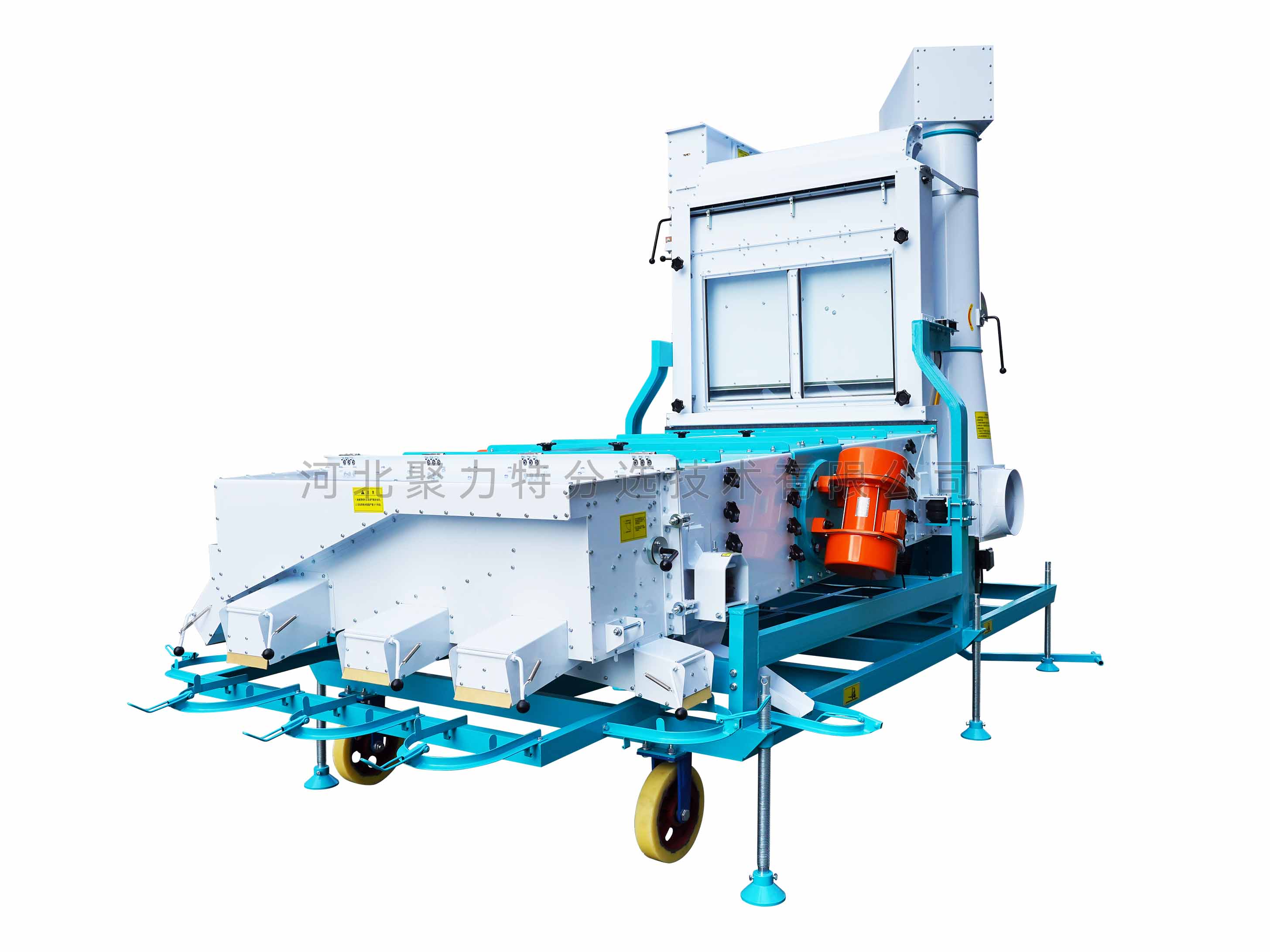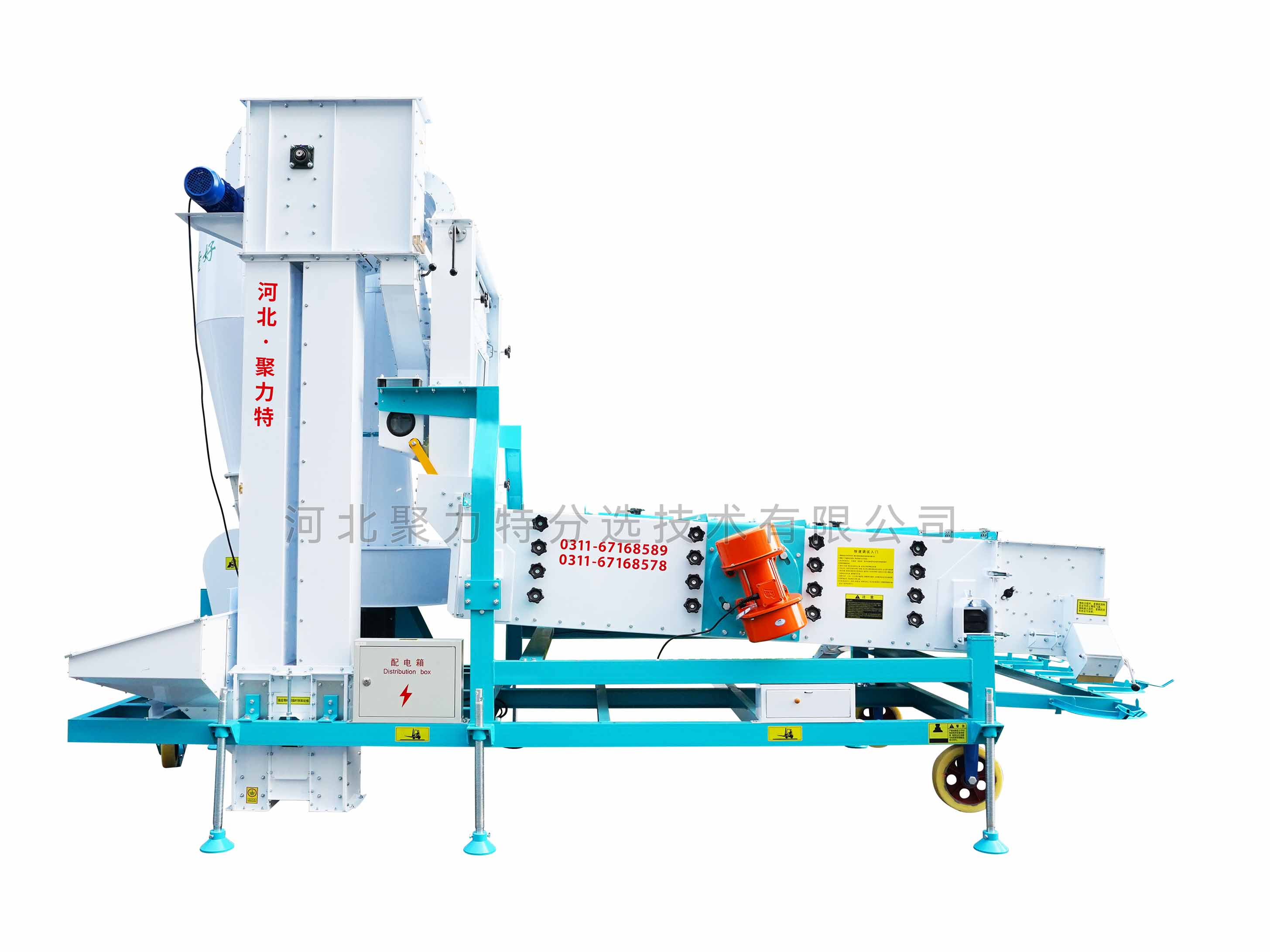5XFS系列風篩清選機由超低速無破碎提升機、環(huán)保除塵器、密閉回轉卸灰閥、立式空氣篩、振動分級篩五部分組成。物料經提升機進入散糧箱,被均勻分散進入立式風篩,物料在風力的作用下分離出輕雜質,輕雜質經旋風除塵器過濾后由回轉卸灰閥排出,其余物料進入篩箱,根據(jù)物料的外形尺寸來調整不同規(guī)格的精密沖孔篩片,去除大雜和小雜,同時通過增減篩片的層數(shù)將成品分成大粒、中粒、小粒。