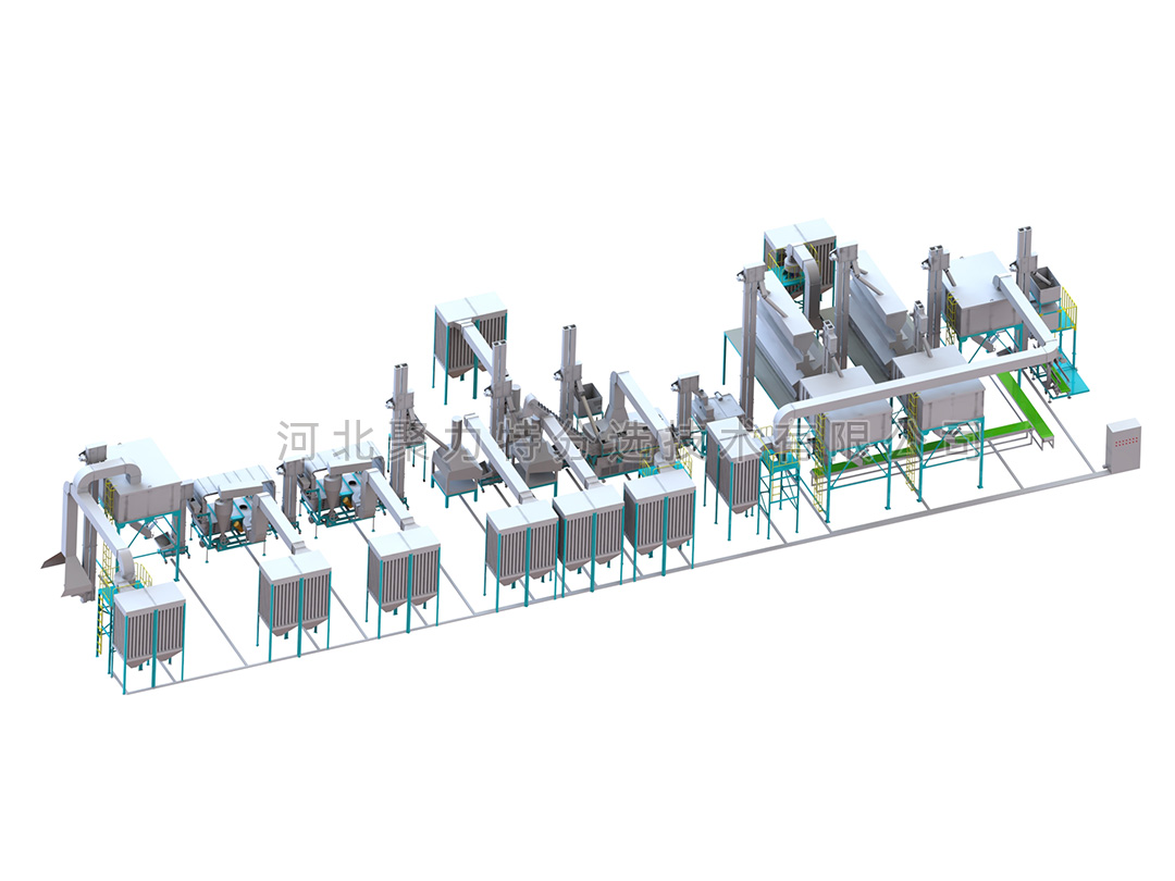 芝麻加工生產(chǎn)線由風(fēng)篩比重清選機(jī)、去石機(jī)、風(fēng)篩清選機(jī)、振動(dòng)分級(jí)篩、色選機(jī)(可選配)、定量包裝秤、除塵系統(tǒng)、二層平臺(tái)、電控柜等設(shè)備組成。