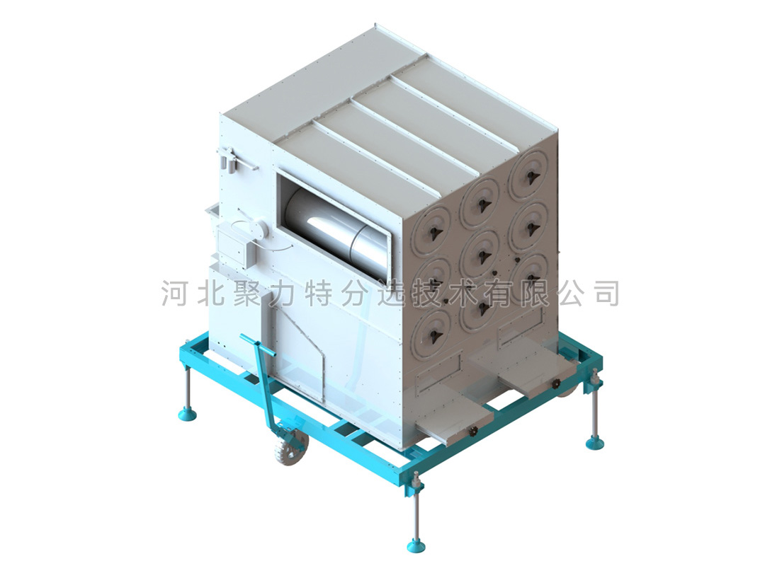 離心風機吹出含塵氣流經入風口進入脈沖除塵箱,由于除塵箱和外部風壓差的存在,含塵氣流會迅速通過脈沖除塵箱內3×3均布的9個濾筒后排入外部空氣中,氣流中的粉塵被阻擋在濾簡外表面上,排入外部空氣中的則為過濾后的清潔空氣,最終完成含塵氣流的粉塵清除功能。脈沖噴吹控制儀接通脈沖電磁閥定期向濾筒內部噴吹 0.6-0.8MPa 高壓空氣,高壓空氣由內向外穿過濾筒,將附著在濾筒外表面上的粉塵除去,塵粒落入下部集塵斗,定期清理。